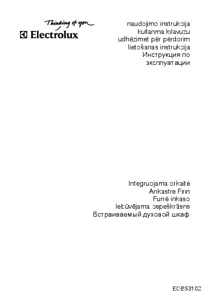 Наша цель состоит в том, чтобы предоставить вам быстрый доступ к содержанию инструкции для духового шкафа Electrolux EOB 53102 X. С помощью онлайн просмотра, Вы можете быстро просмотреть содержимое инструкции и найти решение проблемы с духового шкафа Electrolux EOB 53102 X.
