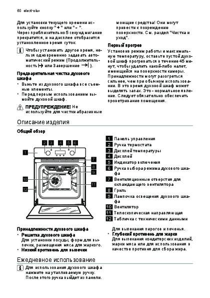 Если листать руководство пользователя духового шкафа Electrolux EOB 53102 X прямо на сайте, не очень удобно для Вас, есть два возможных решения: