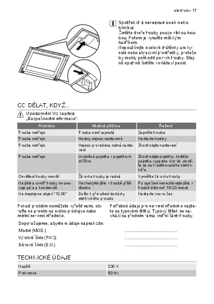 Наша цель состоит в том, чтобы предоставить вам быстрый доступ к содержанию инструкции для духового шкафа Electrolux EOB 53203 K (X). С помощью онлайн просмотра, Вы можете быстро просмотреть содержимое инструкции и найти решение проблемы с духового шкафа Electrolux EOB 53203 K (X).