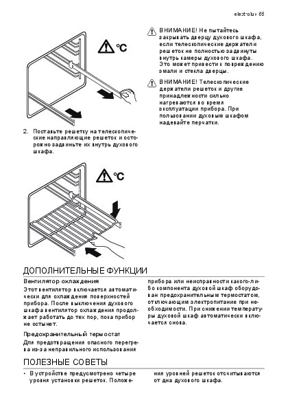 Если листать руководство пользователя духового шкафа Electrolux EOB 53203 K (X) прямо на сайте, не очень удобно для Вас, есть два возможных решения: