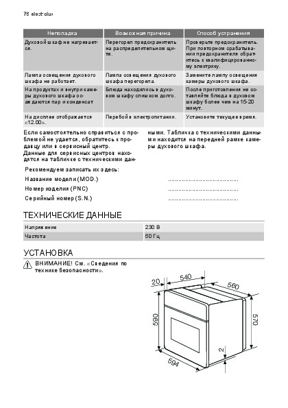 Многие люди предпочитают читать документы не на экране, а в печатной версии. Возможность печати руководства пользователя также была предусмотрена на нашем сайте, и вы можете использовать ее, нажав на иконку «печать» в Pdf-viewer. Нет необходимости печатать все руководство духового шкафа Electrolux EOB 53203 K (X), можно выбрать только нужные страницы инструкции.