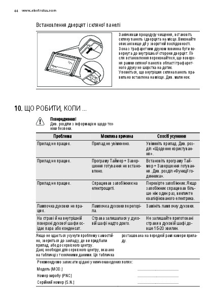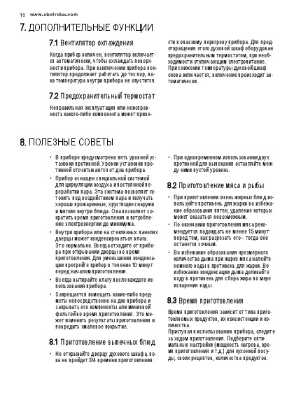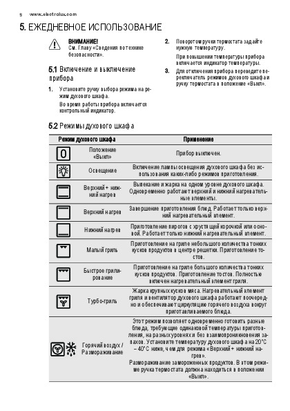 Если листать руководство пользователя духового шкафа Electrolux EOB 53400 BN прямо на сайте, не очень удобно для Вас, есть два возможных решения: