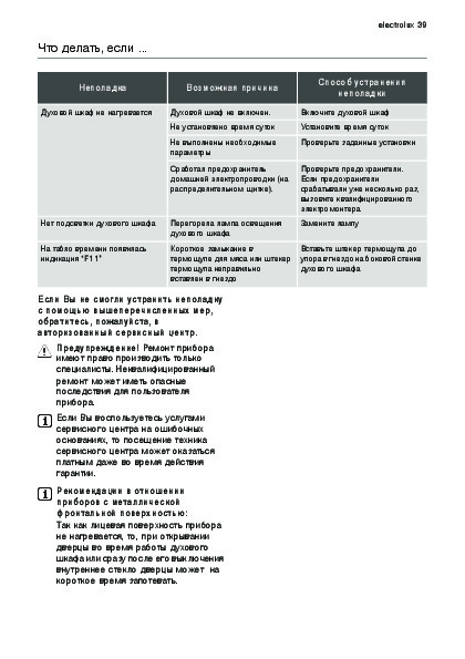 С помощью онлайн просмотра, Вы можете быстро просмотреть содержимое инструкции и найти решение проблемы с духового шкафа Electrolux EOB 64100 K (W).
