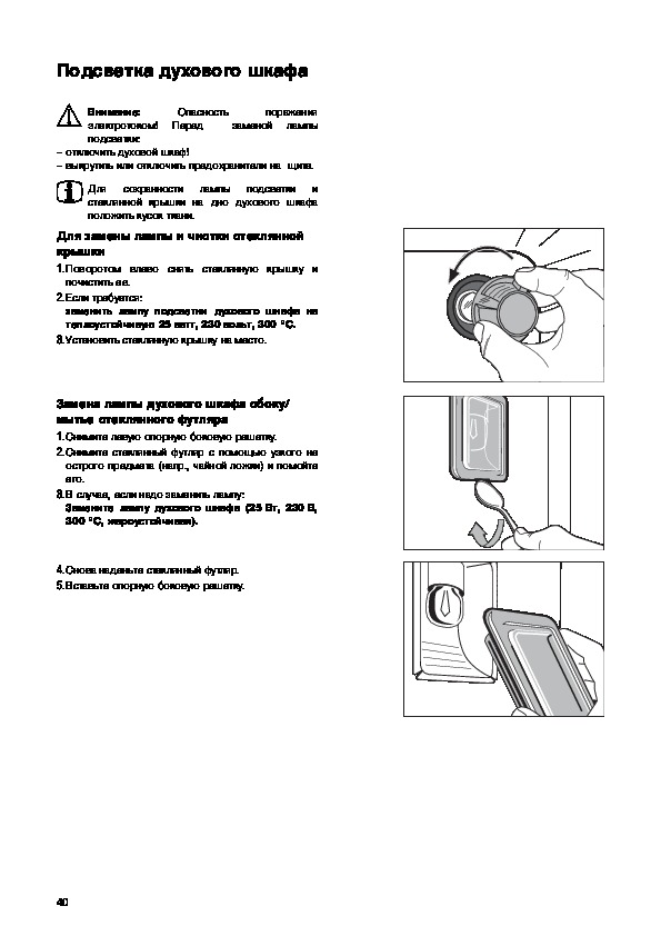 С помощью онлайн просмотра, Вы можете быстро просмотреть содержимое инструкции и найти решение проблемы с духового шкафа Electrolux EOB 6640 K (U) (W) (X).