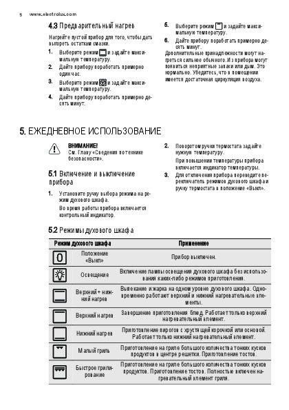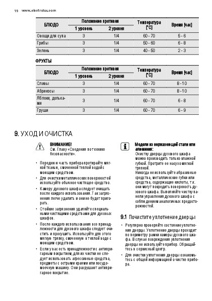 Если листать руководство пользователя духового шкафа Electrolux EOB 93400 BX прямо на сайте, не очень удобно для Вас, есть два возможных решения: