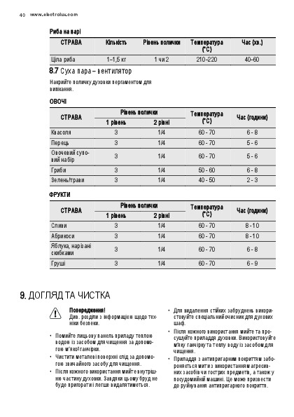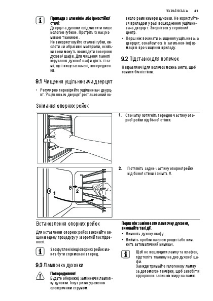 С помощью онлайн просмотра, Вы можете быстро просмотреть содержимое инструкции и найти решение проблемы с духового шкафа Electrolux EOB 93400 BX.