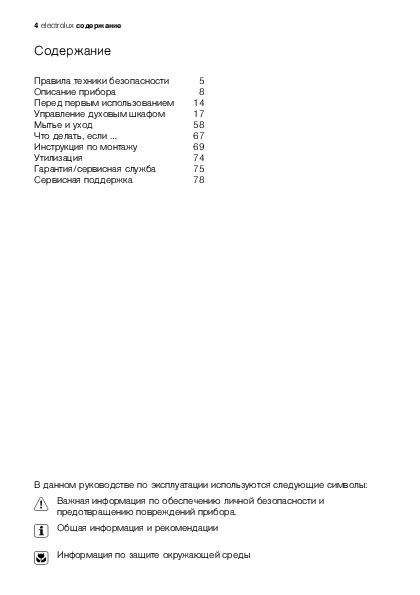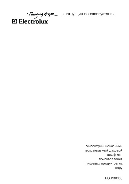 Наша цель состоит в том, чтобы предоставить вам быстрый доступ к содержанию инструкции для духового шкафа Electrolux EOB 98000 A (X). С помощью онлайн просмотра, Вы можете быстро просмотреть содержимое инструкции и найти решение проблемы с духового шкафа Electrolux EOB 98000 A (X).