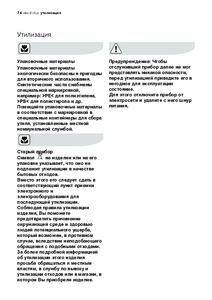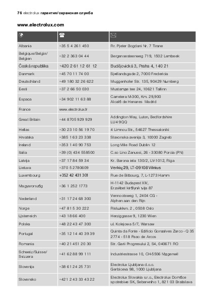 Инструкции по эксплуатации бытовой техники и электроники > Electrolux
