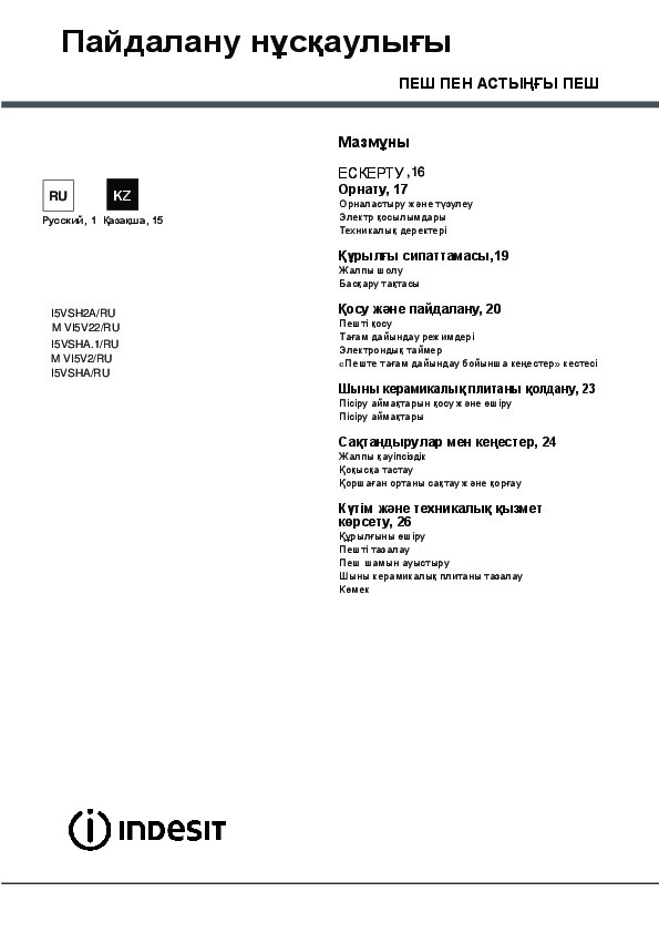 Нет необходимости печатать все руководство плиты Indesit MV I5V22 (W), можно выбрать только нужные страницы инструкции.