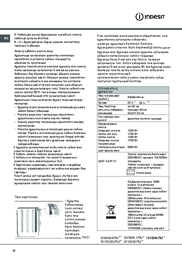 С помощью онлайн просмотра, Вы можете быстро просмотреть содержимое инструкции и найти решение проблемы с плиты Indesit MV I5V22 (W).