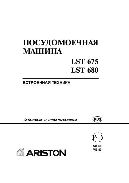 Перед Вами Инструкция посудомоечной машины Ariston LST 680. Вы можете ознакомиться и скачать данное руководство по эксплуатации бесплатно.