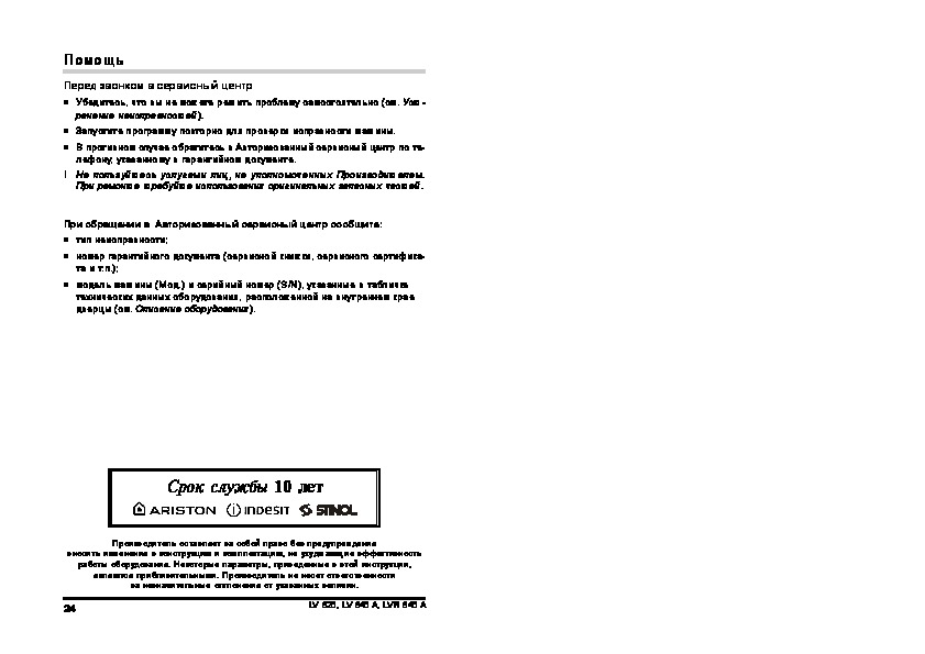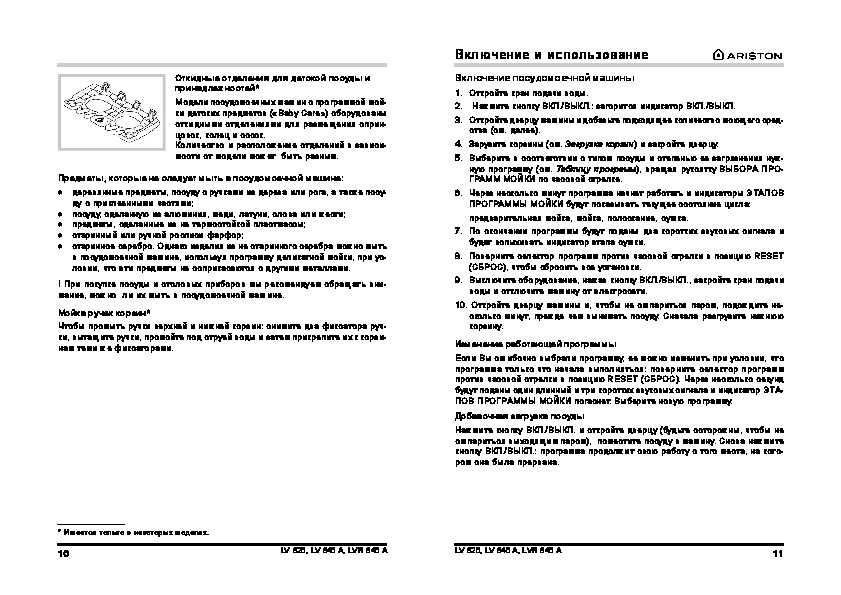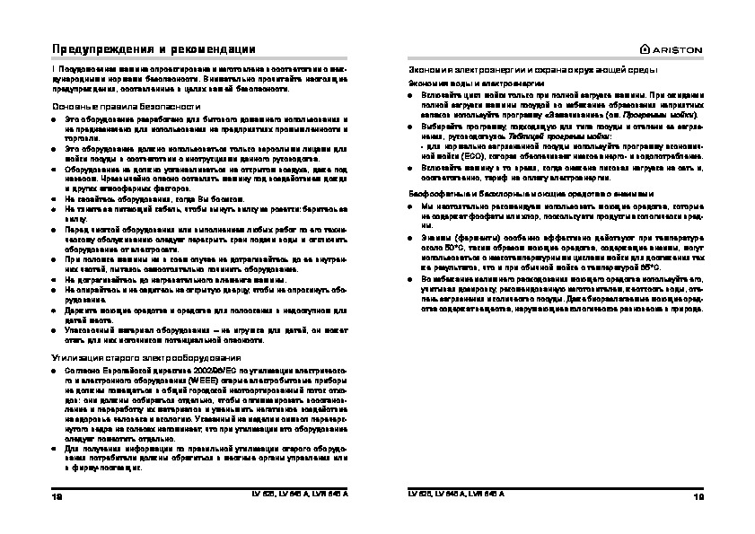 Наша цель состоит в том, чтобы предоставить вам быстрый доступ к содержанию инструкции для посудомоечной машины Ariston LV 645 A. С помощью онлайн просмотра, Вы можете быстро просмотреть содержимое инструкции и найти решение проблемы с посудомоечной машины Ariston LV 645 A.
