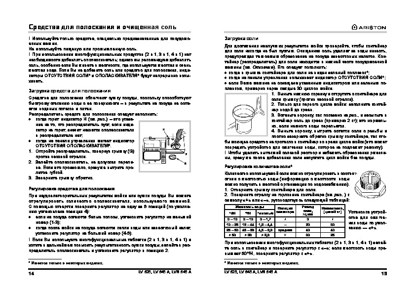 Если листать руководство пользователя посудомоечной машины Ariston LV 645 A прямо на сайте, не очень удобно для Вас, есть два возможных решения: