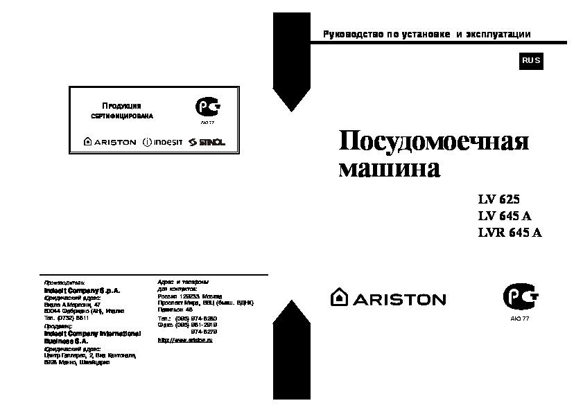 Перед Вами Инструкция посудомоечной машины Ariston LV 645 A. Вы можете ознакомиться и скачать данное руководство по эксплуатации бесплатно. Инструкция по применению на русском языке, предложенная производителем, позволяет правильно использовать Вашу бытовую технику и электронику.