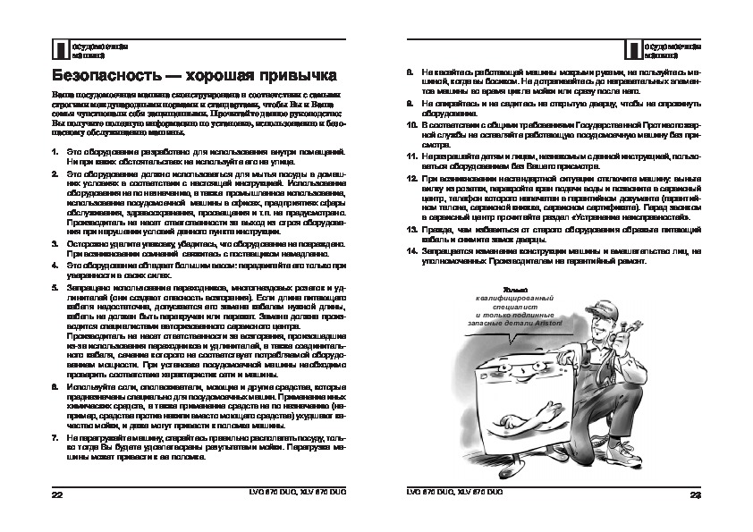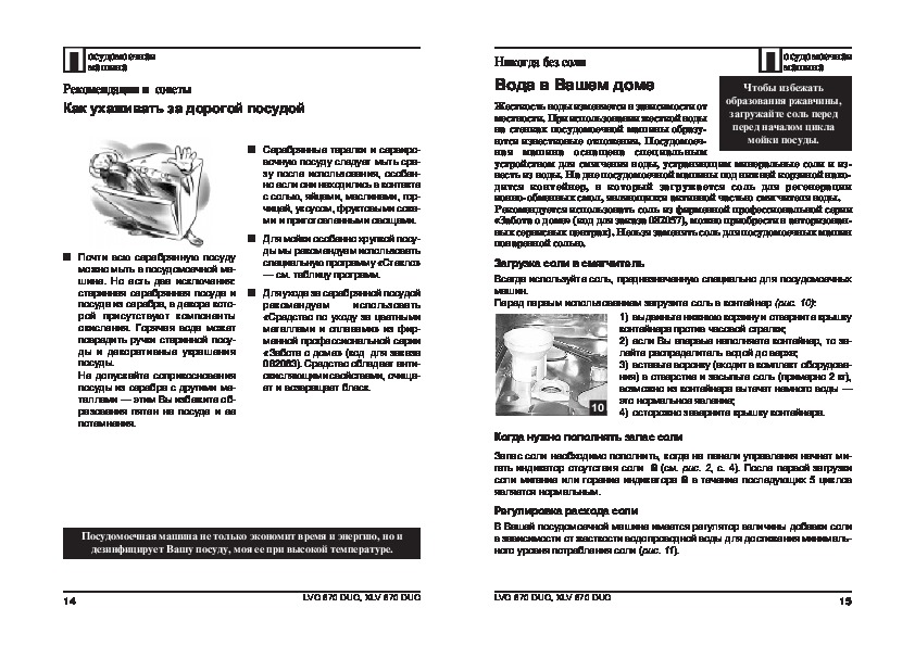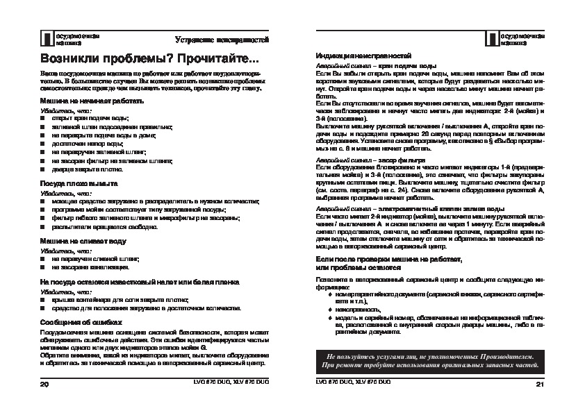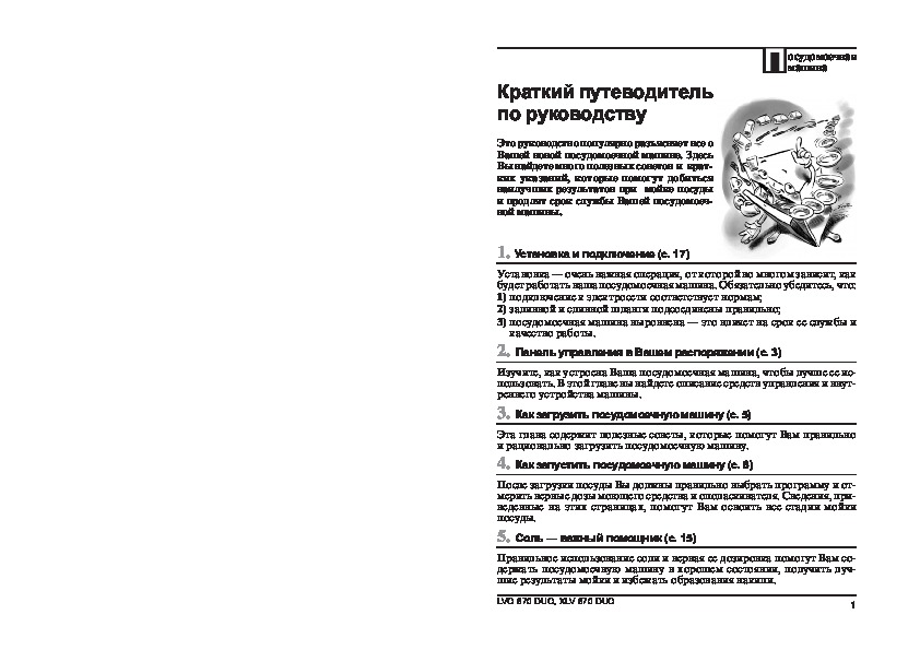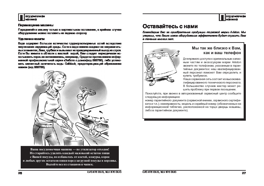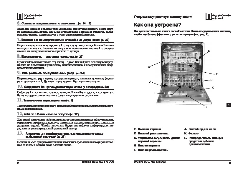 Если листать руководство пользователя посудомоечной машины Ariston XLV 670 DUO прямо на сайте, не очень удобно для Вас, есть два возможных решения: