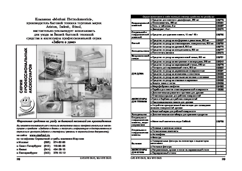 С помощью онлайн просмотра, Вы можете быстро просмотреть содержимое инструкции и найти решение проблемы с посудомоечной машины Ariston XLV 670 DUO.