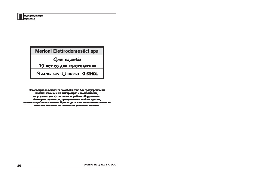 Нет необходимости печатать все руководство посудомоечной машины Ariston XLV 670 DUO, можно выбрать только нужные страницы инструкции.