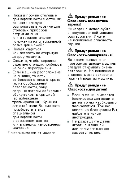Наша цель состоит в том, чтобы предоставить вам быстрый доступ к содержанию инструкции для посудомоечной машины Bosch SPS 30E02RU. С помощью онлайн просмотра, Вы можете быстро просмотреть содержимое инструкции и найти решение проблемы с посудомоечной машины Bosch SPS 30E02RU.