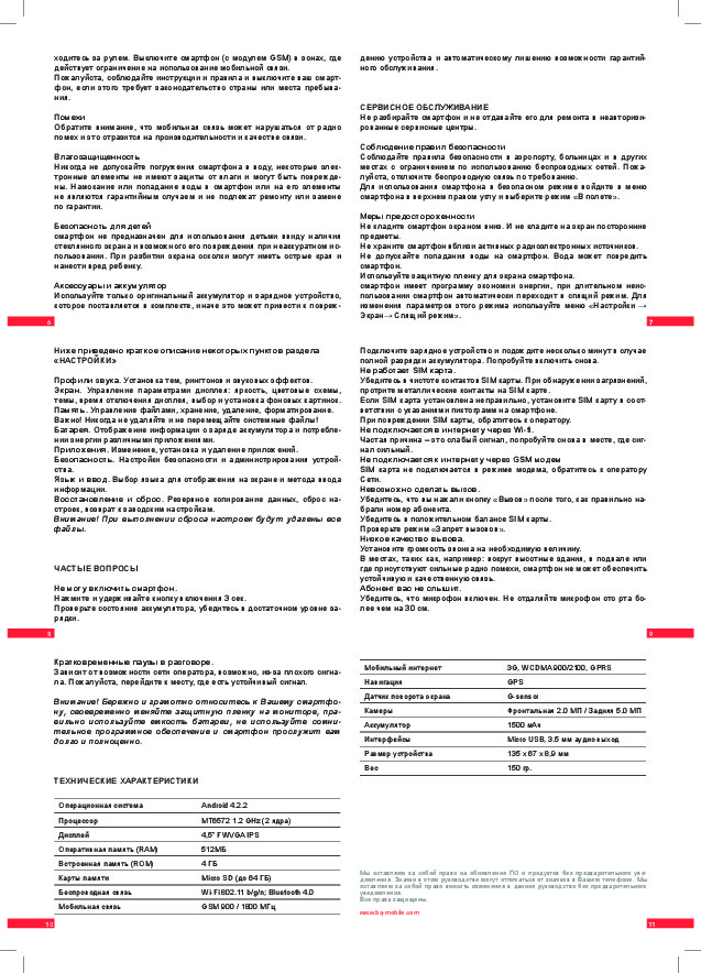 Если листать руководство пользователя сотового gsm, смартфона BQ BQS-4510 Florence прямо на сайте, не очень удобно для Вас, есть два возможных решения: