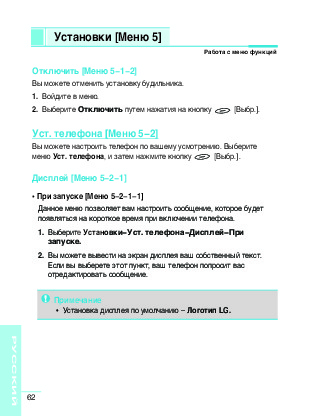 Перед Вами Инструкция сотового gsm, смартфона LG -510W. Вы можете ознакомиться и скачать данное руководство по эксплуатации бесплатно. Инструкция по применению на русском языке, предложенная производителем, позволяет правильно использовать Вашу бытовую технику и электронику.