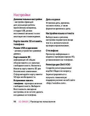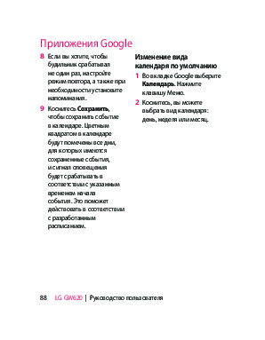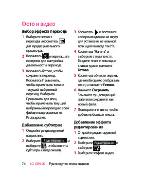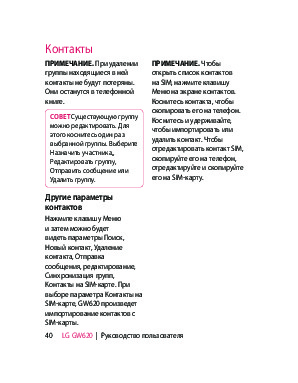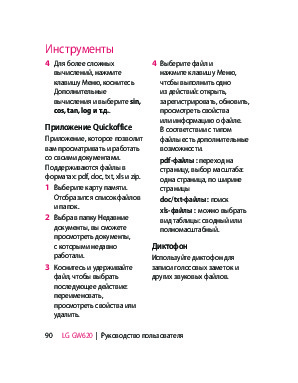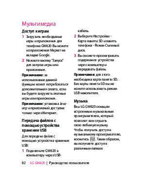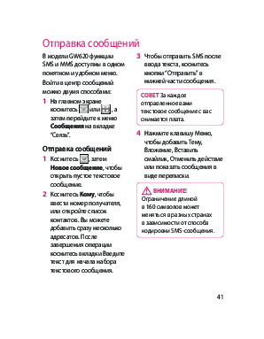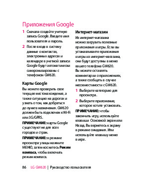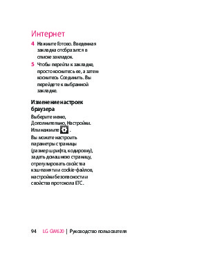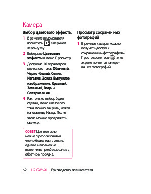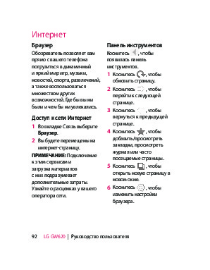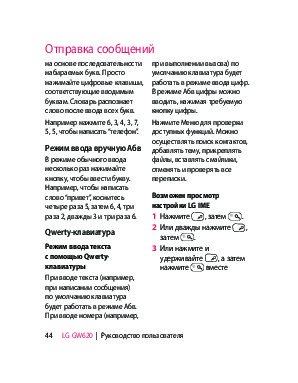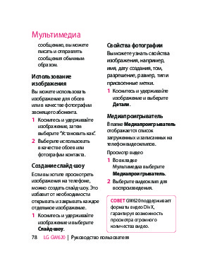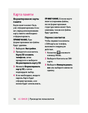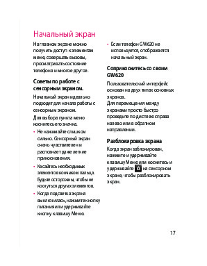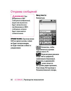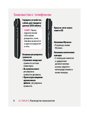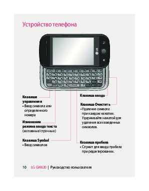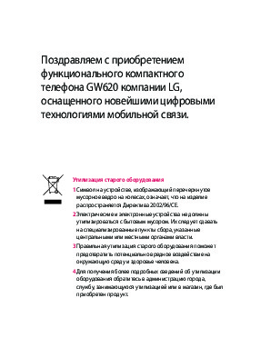 Инструкция сотового gsm, смартфона LG GW620