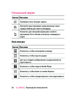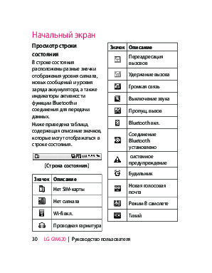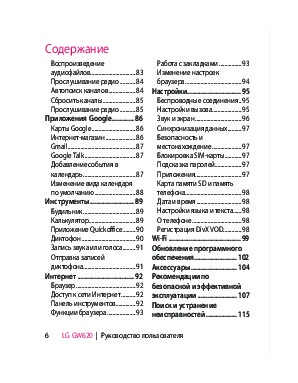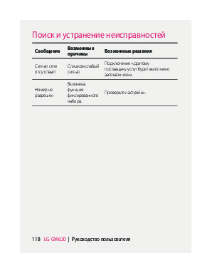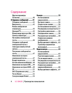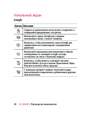 Наша цель состоит в том, чтобы предоставить вам быстрый доступ к содержанию инструкции для сотового gsm, смартфона LG GW620. С помощью онлайн просмотра, Вы можете быстро просмотреть содержимое инструкции и найти решение проблемы с сотового gsm, смартфона LG GW620.