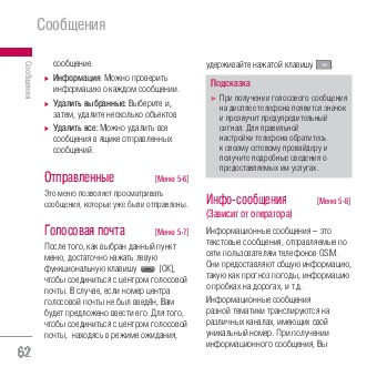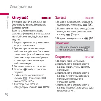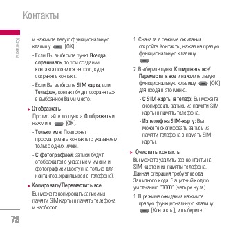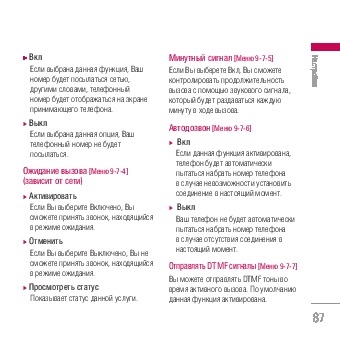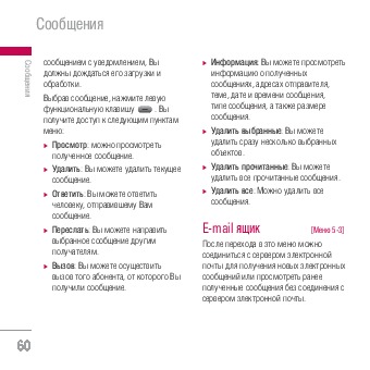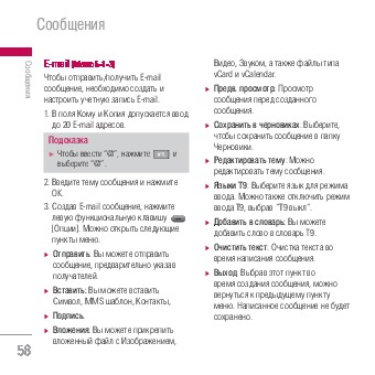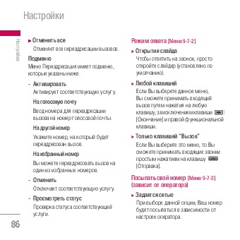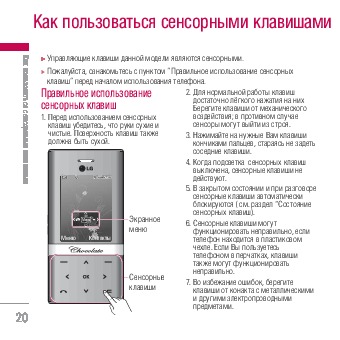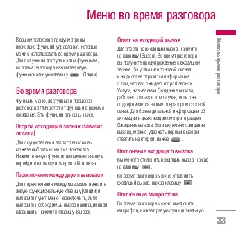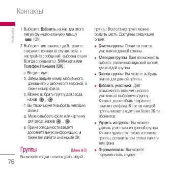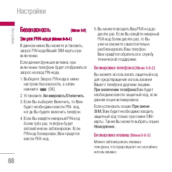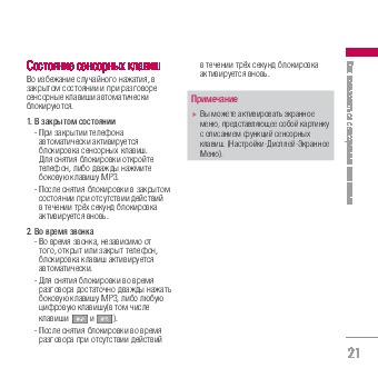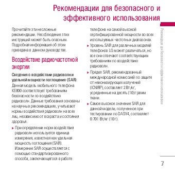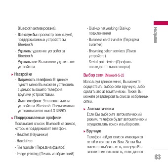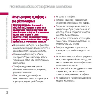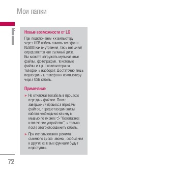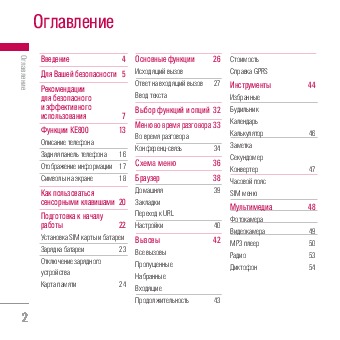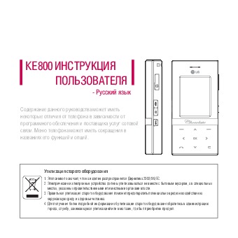 Нет необходимости печатать все руководство сотового gsm, смартфона LG KE800, можно выбрать только нужные страницы инструкции.