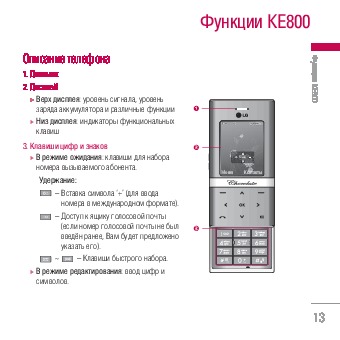 С помощью онлайн просмотра, Вы можете быстро просмотреть содержимое инструкции и найти решение проблемы с сотового gsm, смартфона LG KE800.