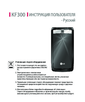Перед Вами Инструкция сотового gsm, смартфона LG KF300. Вы можете ознакомиться и скачать данное руководство по эксплуатации бесплатно. Инструкция по применению на русском языке, предложенная производителем, позволяет правильно использовать Вашу бытовую технику и электронику.