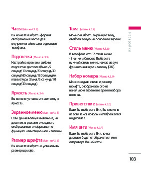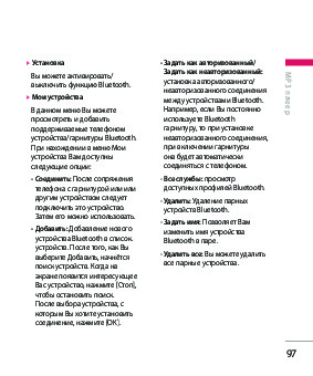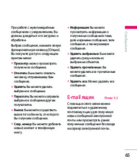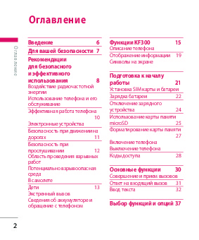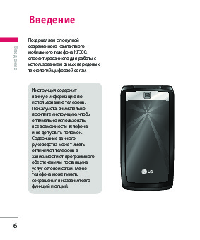 Наша цель состоит в том, чтобы предоставить вам быстрый доступ к содержанию инструкции для сотового gsm, смартфона LG KF300. С помощью онлайн просмотра, Вы можете быстро просмотреть содержимое инструкции и найти решение проблемы с сотового gsm, смартфона LG KF300.