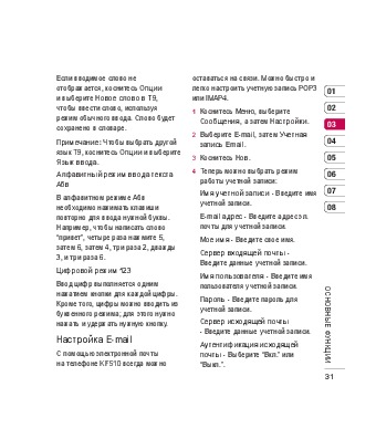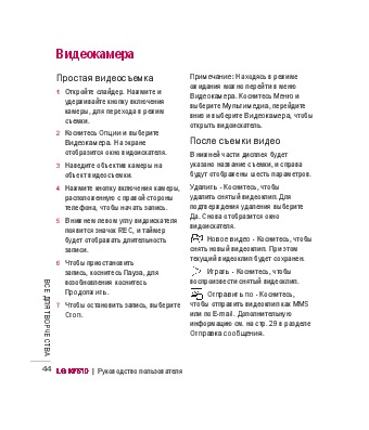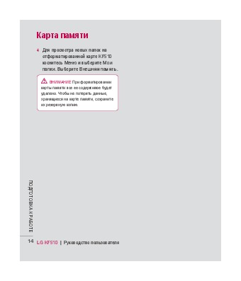 Нет необходимости печатать все руководство сотового gsm, смартфона LG KF510, можно выбрать только нужные страницы инструкции.