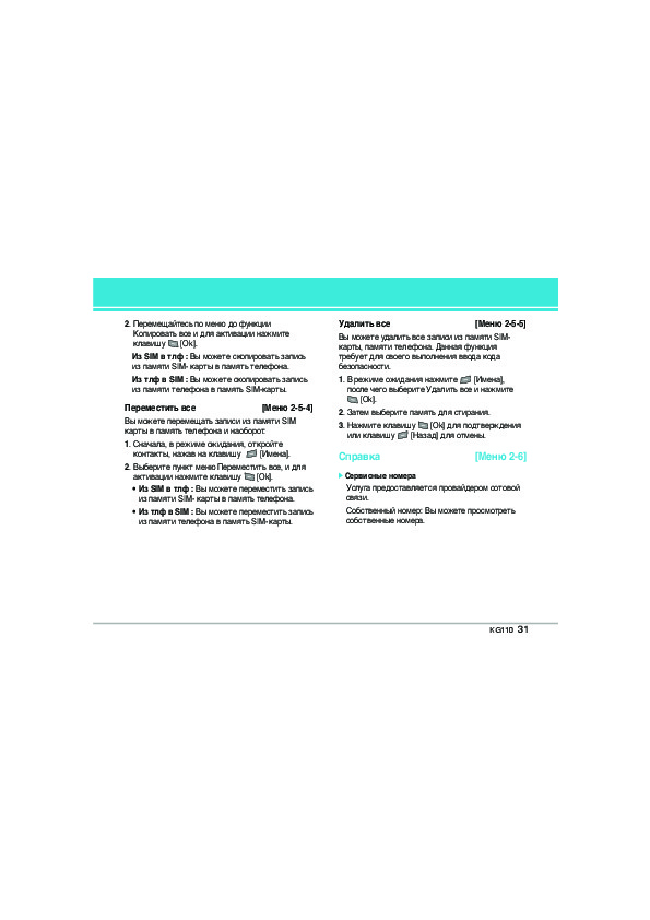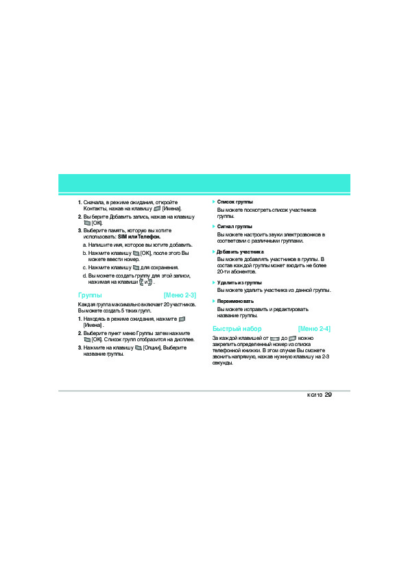 Инструкция сотового gsm, смартфона LG KG110