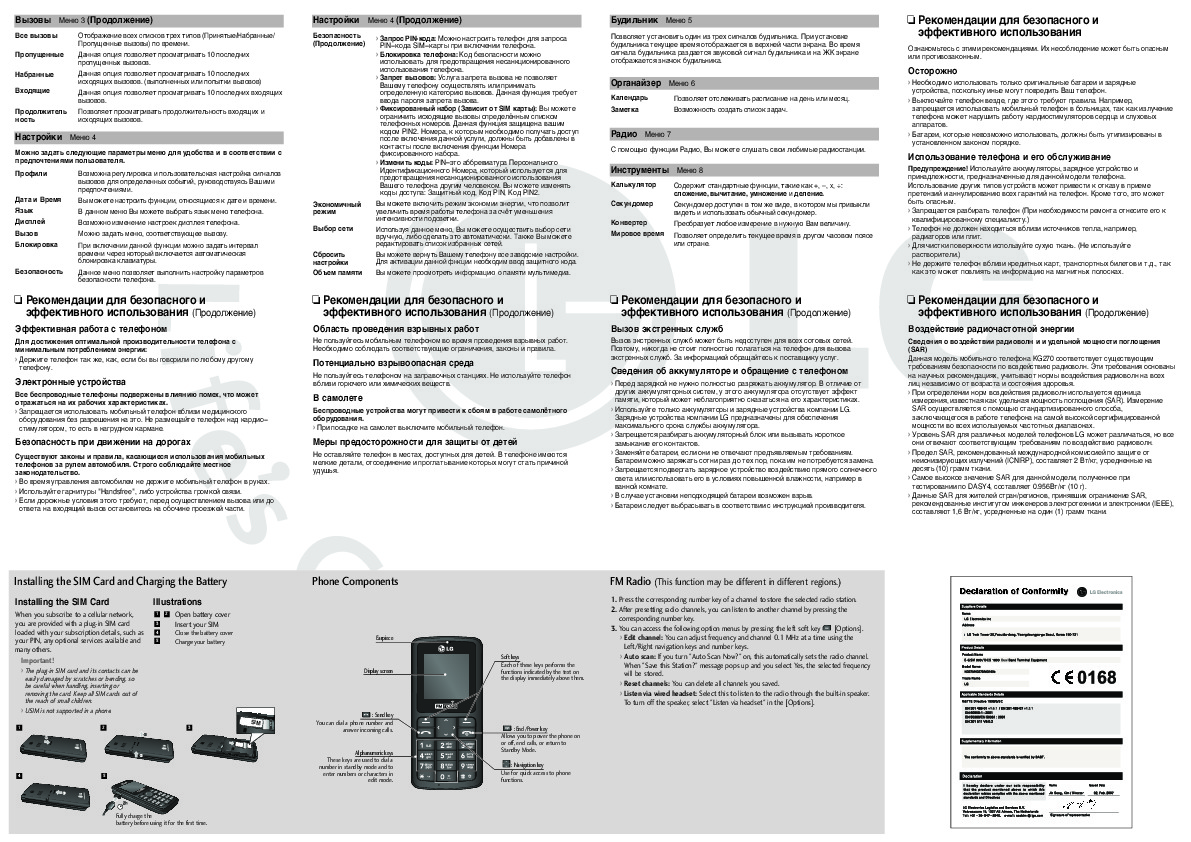 Нет необходимости печатать все руководство сотового gsm, смартфона LG KG270, можно выбрать только нужные страницы инструкции.