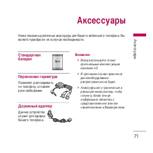 Нет необходимости печатать все руководство сотового gsm, смартфона LG KP200, можно выбрать только нужные страницы инструкции.