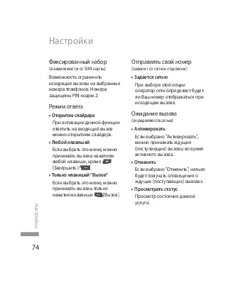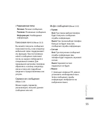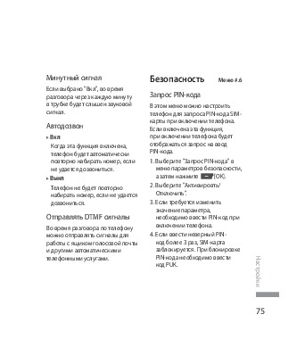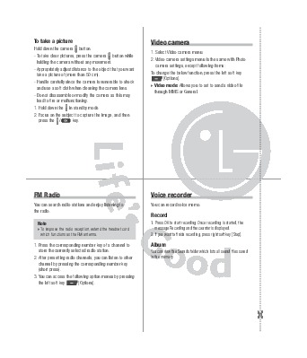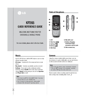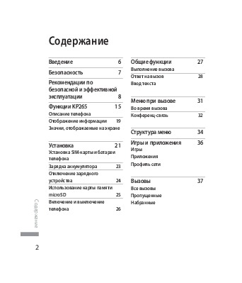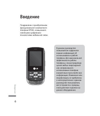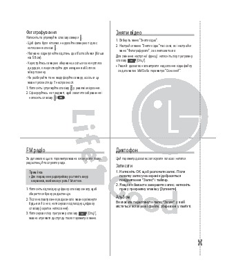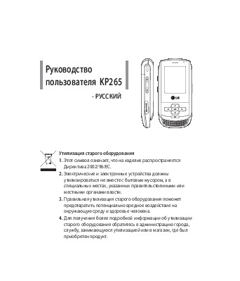 Нет необходимости печатать все руководство сотового gsm, смартфона LG KP265, можно выбрать только нужные страницы инструкции.