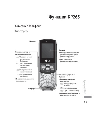 Перед Вами Инструкция сотового gsm, смартфона LG KP265. Вы можете ознакомиться и скачать данное руководство по эксплуатации бесплатно.