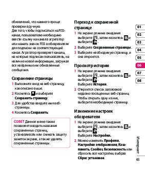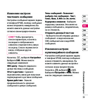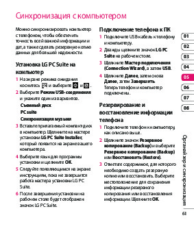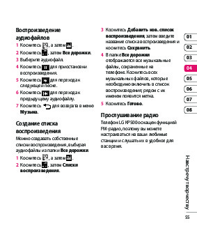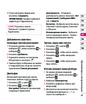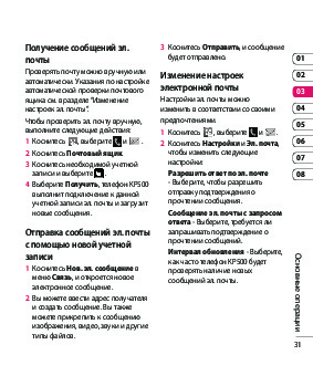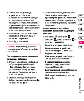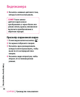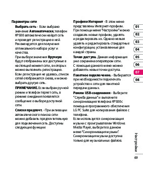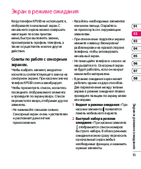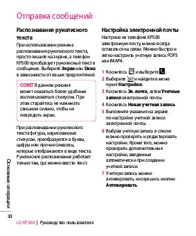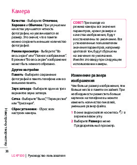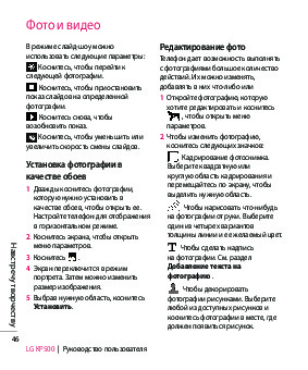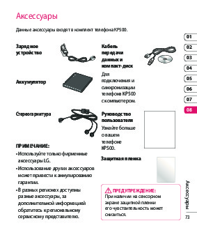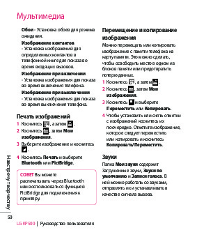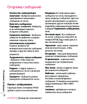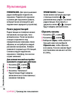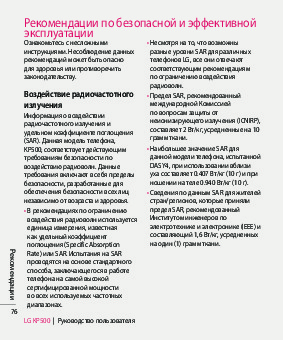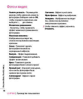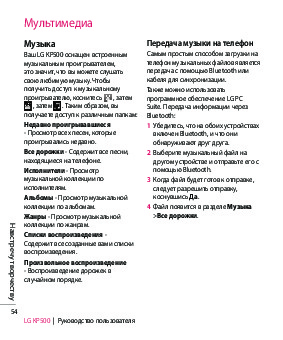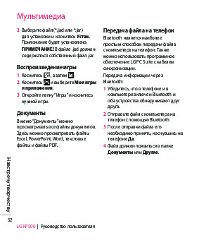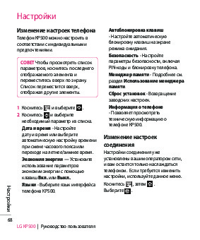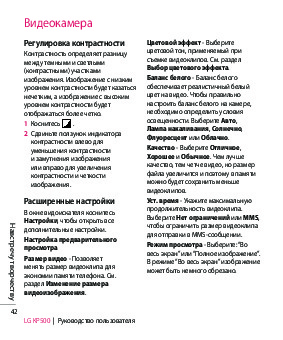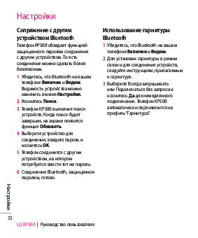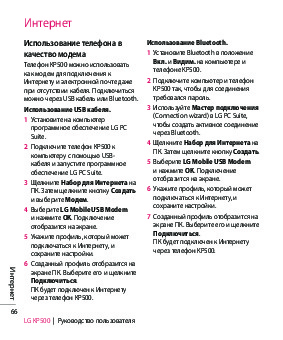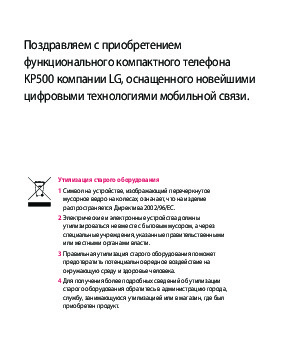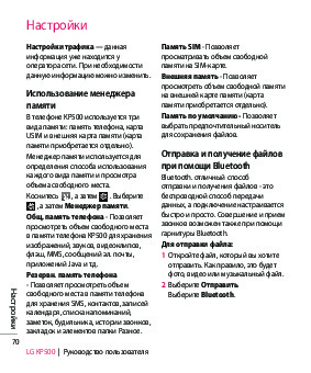 Нет необходимости печатать все руководство сотового gsm, смартфона LG KP500, можно выбрать только нужные страницы инструкции.