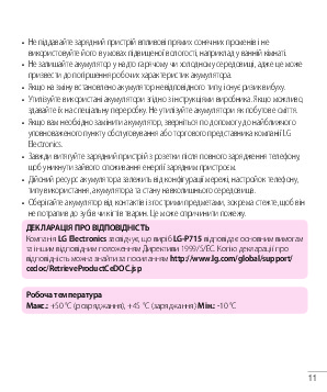 Многие люди предпочитают читать документы не на экране, а в печатной версии. Возможность печати руководства пользователя также была предусмотрена на нашем сайте, и вы можете использовать ее, нажав на иконку «печать» в Pdf-viewer. Нет необходимости печатать все руководство сотового gsm, смартфона LG P715(Optimus L7 II Dual), можно выбрать только нужные страницы инструкции.