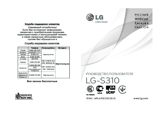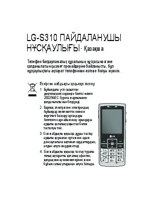 Перед Вами Инструкция сотового gsm, смартфона LG S310. Вы можете ознакомиться и скачать данное руководство по эксплуатации бесплатно. Инструкция по применению на русском языке, предложенная производителем, позволяет правильно использовать Вашу бытовую технику и электронику.