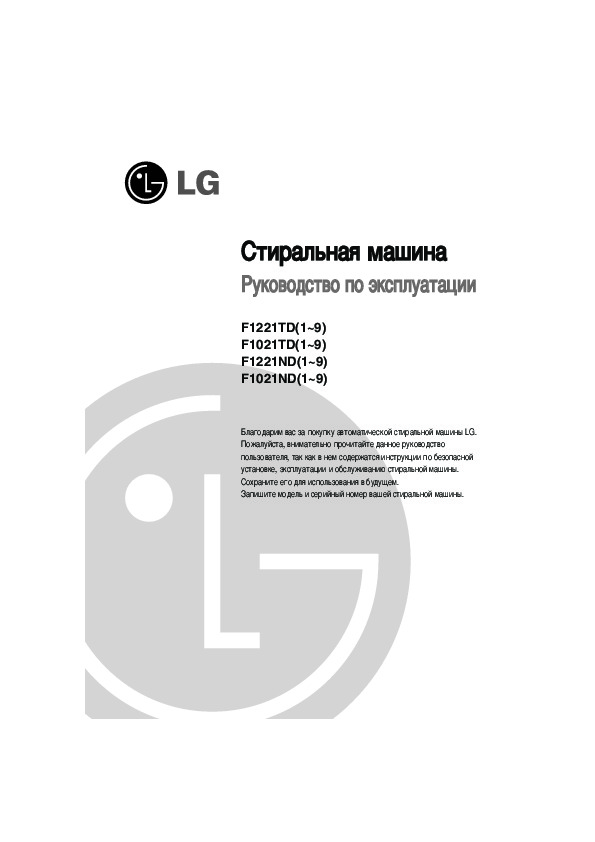 Перед Вами Инструкция стиральной машины LG F1021TD. Вы можете ознакомиться и скачать данное руководство по эксплуатации бесплатно. Инструкция по применению на русском языке, предложенная производителем, позволяет правильно использовать Вашу бытовую технику и электронику.