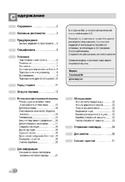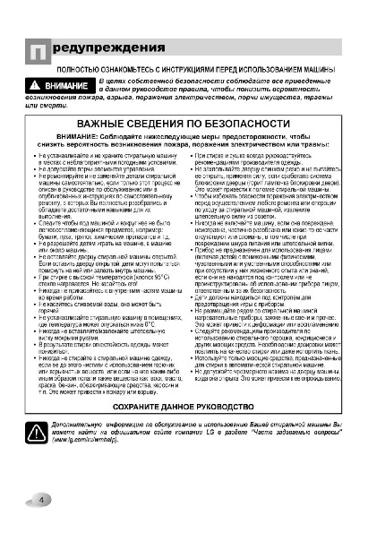 Нет необходимости печатать все руководство стиральной машины LG F1248TD, можно выбрать только нужные страницы инструкции.