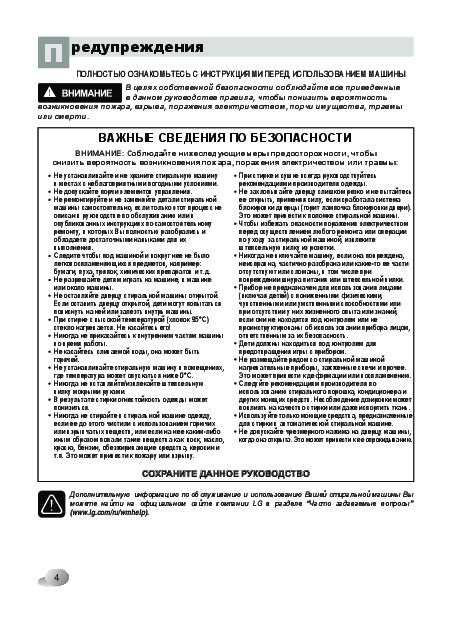 Нет необходимости печатать все руководство стиральной машины LG F1280ND, можно выбрать только нужные страницы инструкции.