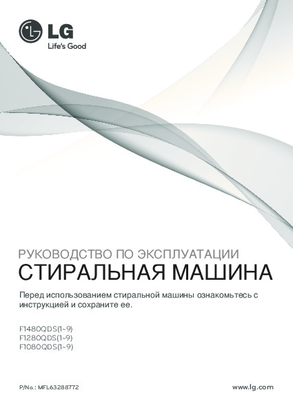 Перед Вами Инструкция стиральной машины LG F1280QDS5. Вы можете ознакомиться и скачать данное руководство по эксплуатации бесплатно.