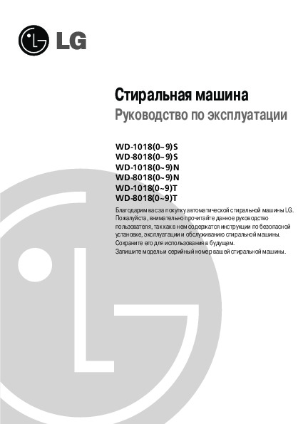 Перед Вами Инструкция стиральной машины LG WD-80180S. Вы можете ознакомиться и скачать данное руководство по эксплуатации бесплатно.