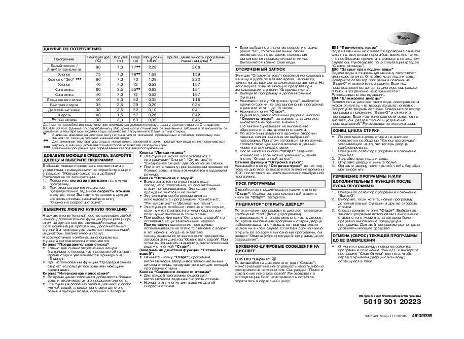 Инструкции по эксплуатации бытовой техники и электроники > Whirlpool