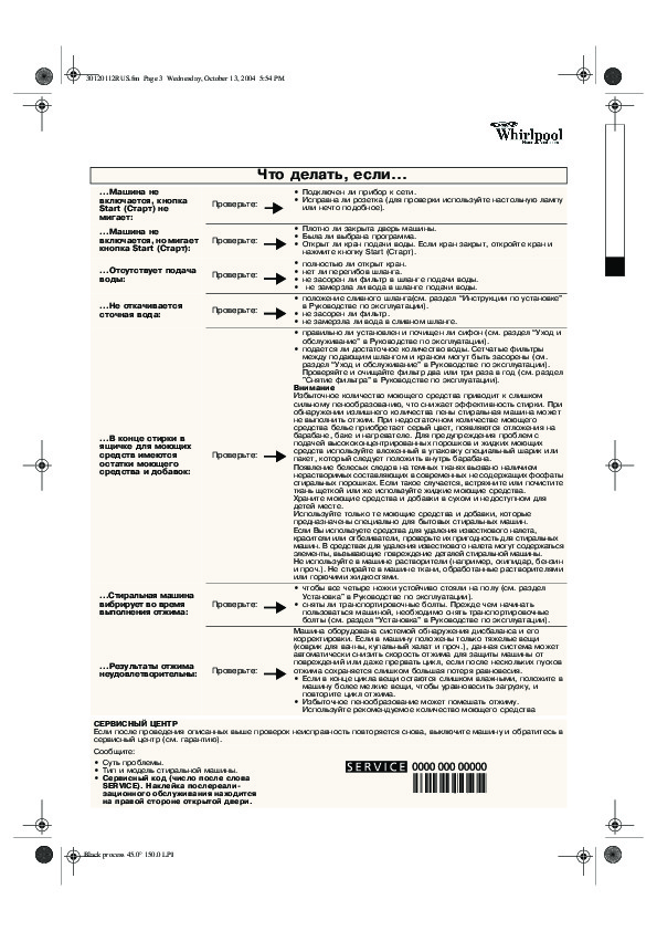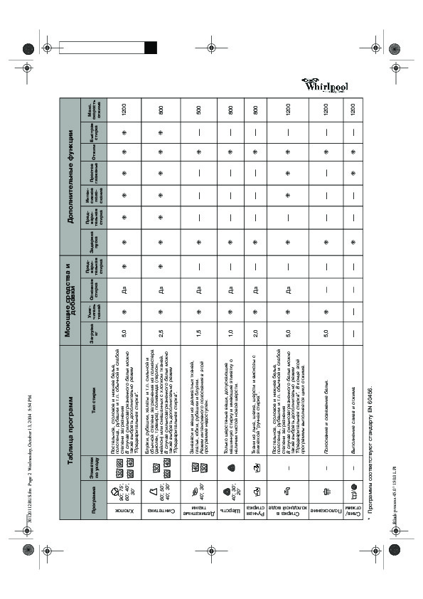 Инструкции по эксплуатации бытовой техники и электроники > Whirlpool