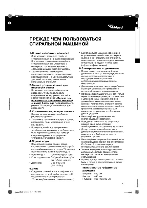 Инструкция стиральной машины Whirlpool AWG 878_AWG 879(Инструкция)