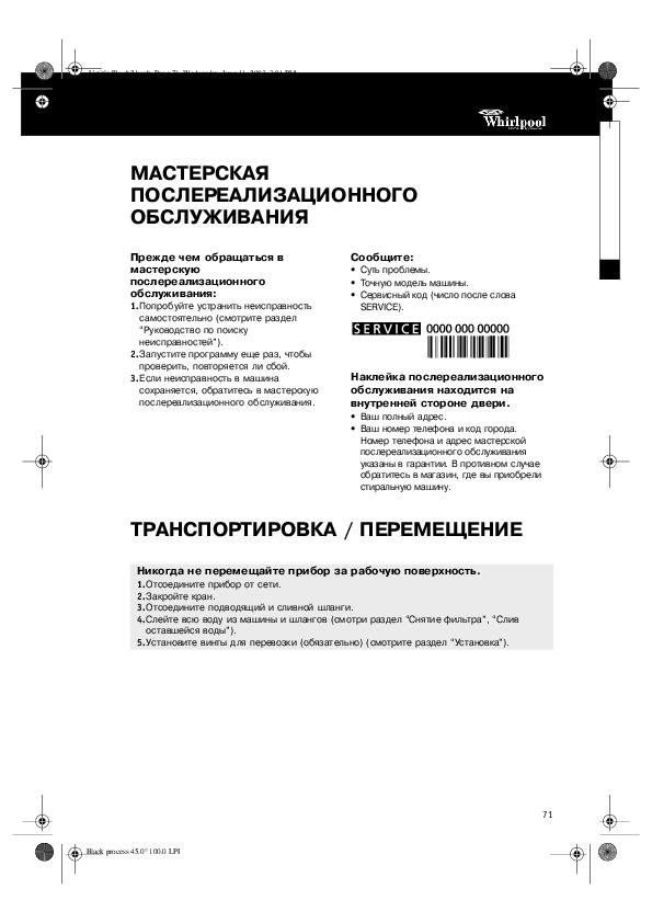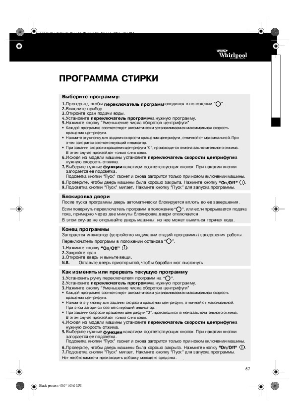 Инструкции по эксплуатации бытовой техники и электроники > Whirlpool