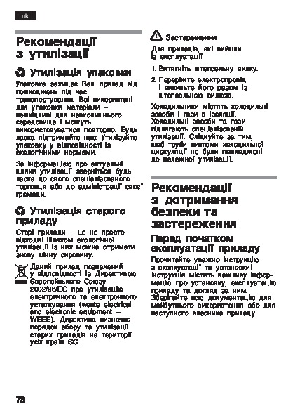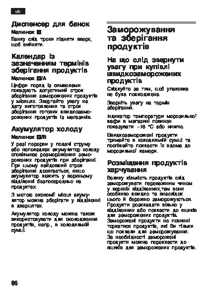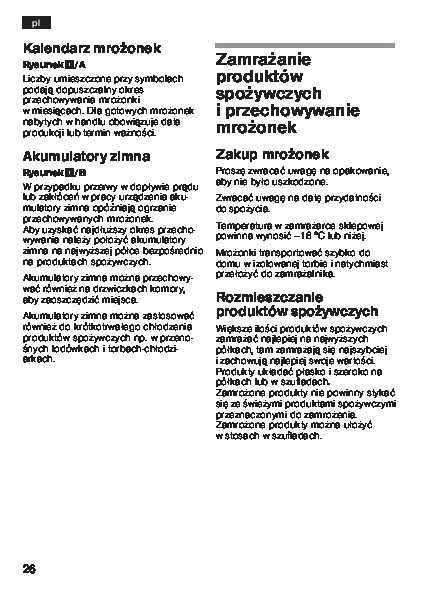 Многие люди предпочитают читать документы не на экране, а в печатной версии. Возможность печати руководства пользователя также была предусмотрена на нашем сайте, и вы можете использовать ее, нажав на иконку «печать» в Pdf-viewer. Нет необходимости печатать все руководство холодильника Bosch KGN 39V03_KGN 39V63_KGN 39Y20_KGN 39Y40, можно выбрать только нужные страницы инструкции.