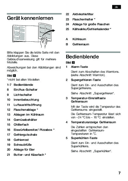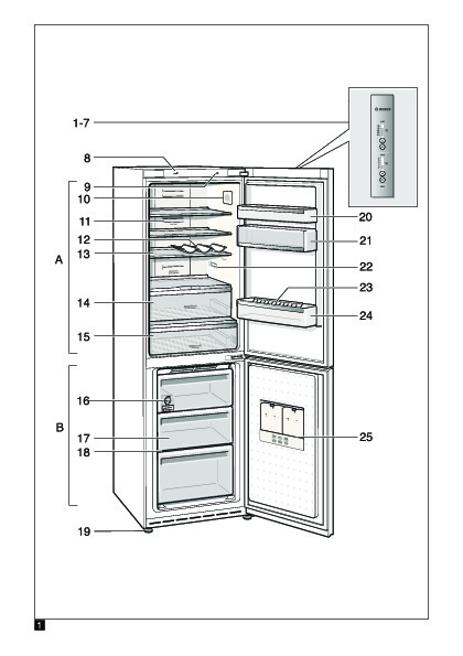 С помощью онлайн просмотра, Вы можете быстро просмотреть содержимое инструкции и найти решение проблемы с холодильника Bosch KGN 56A72NE.